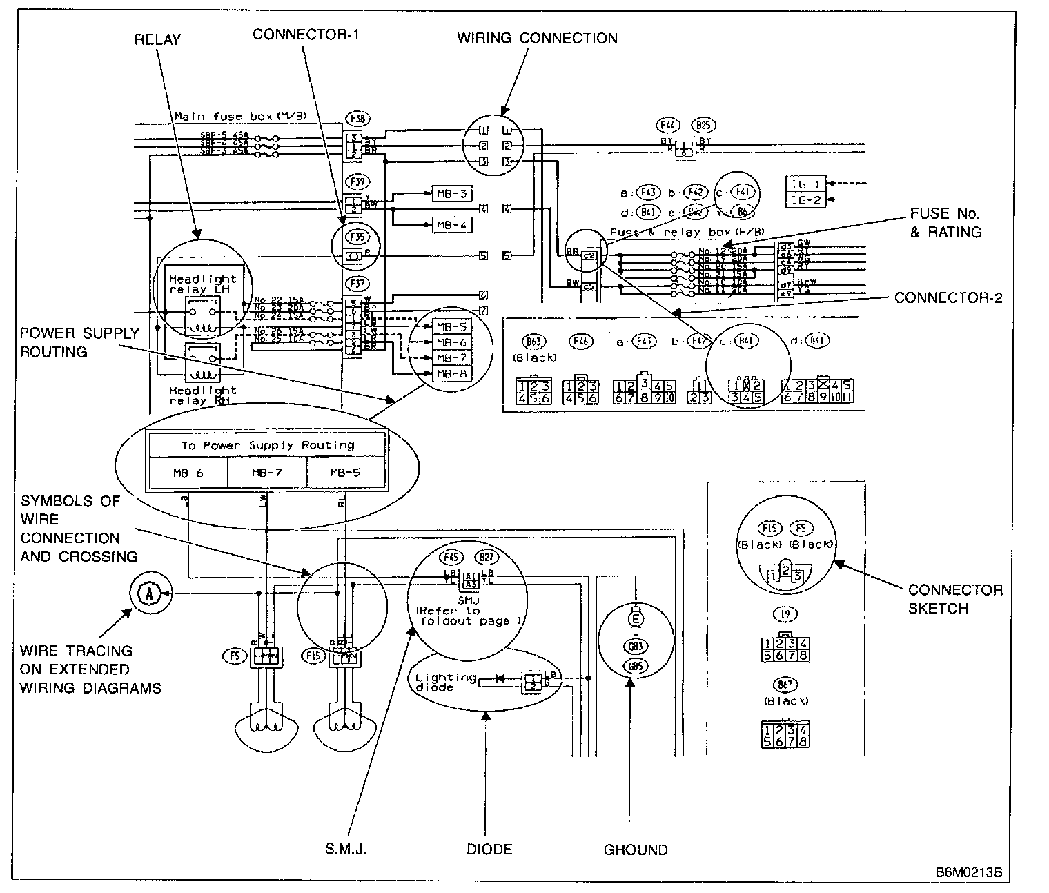 A symbol is used to indicate the power supply in each wiring diagram. "MB-5", "MB-6", etc., which are used as power- supply symbols throughout the text, correspond with those shown in the POWER SUPPLY ROUTING in the wiring diagram.