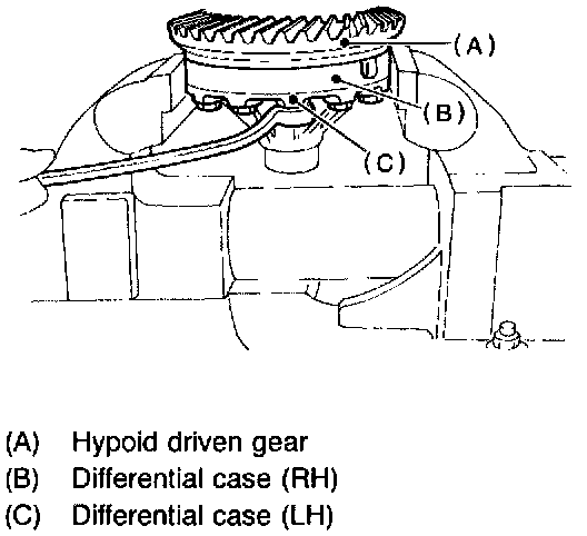 2. Secure the case in a vise and remove the hypoid driven gear tightening bolts, then separate the crown gear, case (RH) and case (LH).