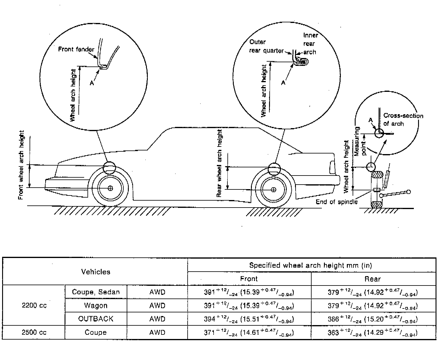 1. WHEEL ARCH HEIGHT (FRONT AND REAR)