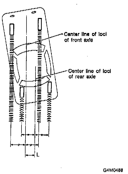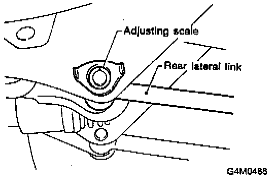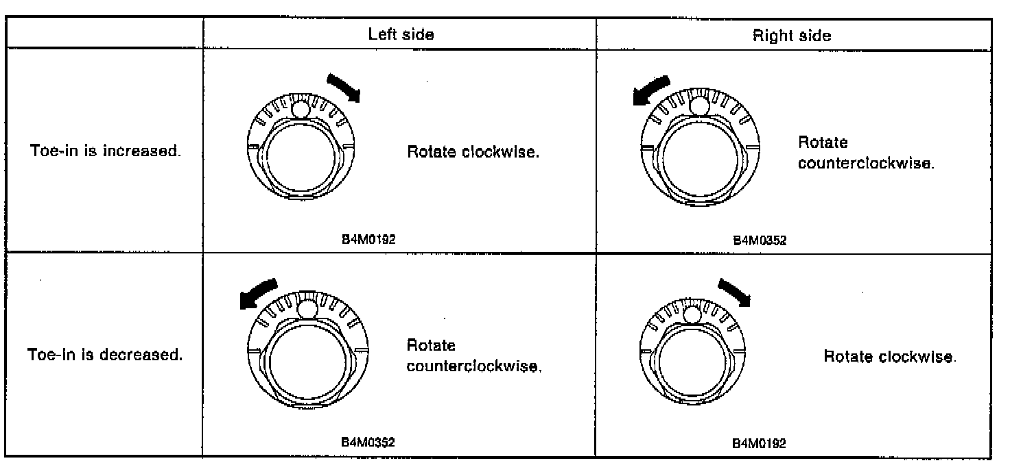 b. When one rear wheel is adjusted in a toe-in direction, adjust the other rear wheel equally in toe-out direction, in order to make thrust angle adjustment.