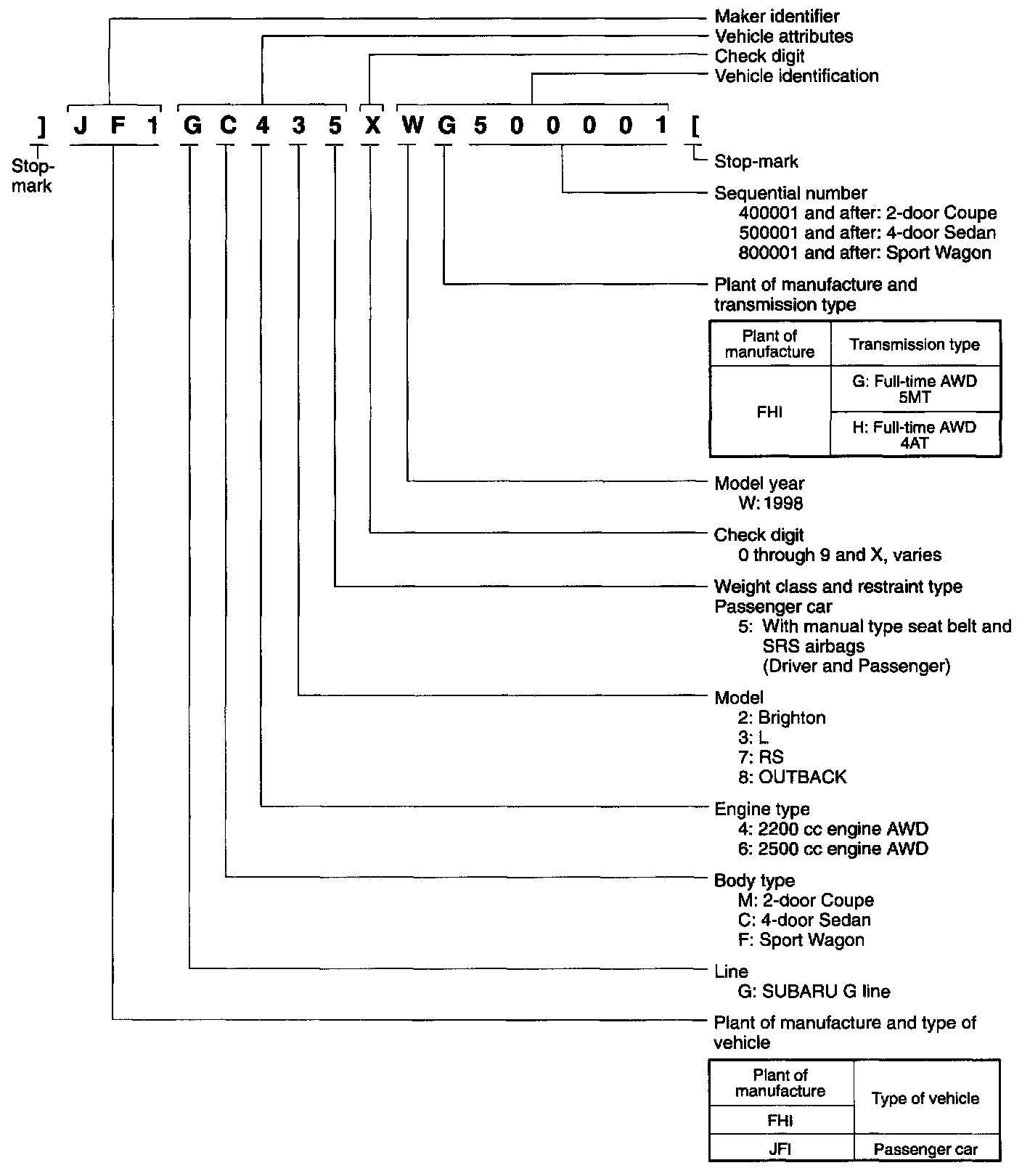 VEHICLE IDENTIFICATION NUMBERS (V.I.N.)