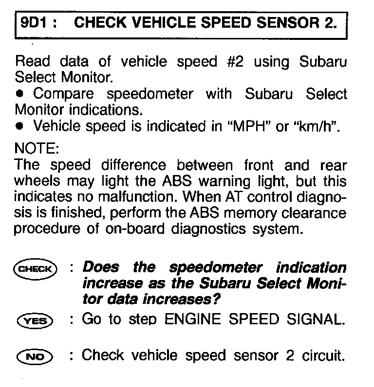 D: CHECK VEHICLE SPEED SENSOR 2.