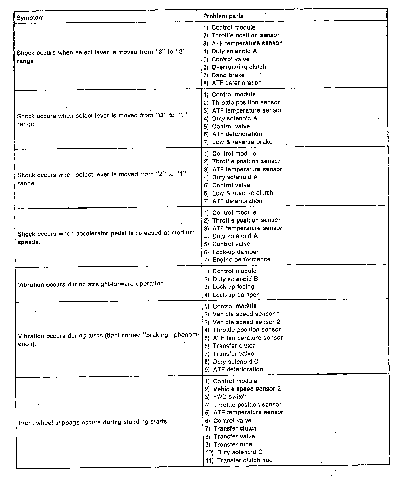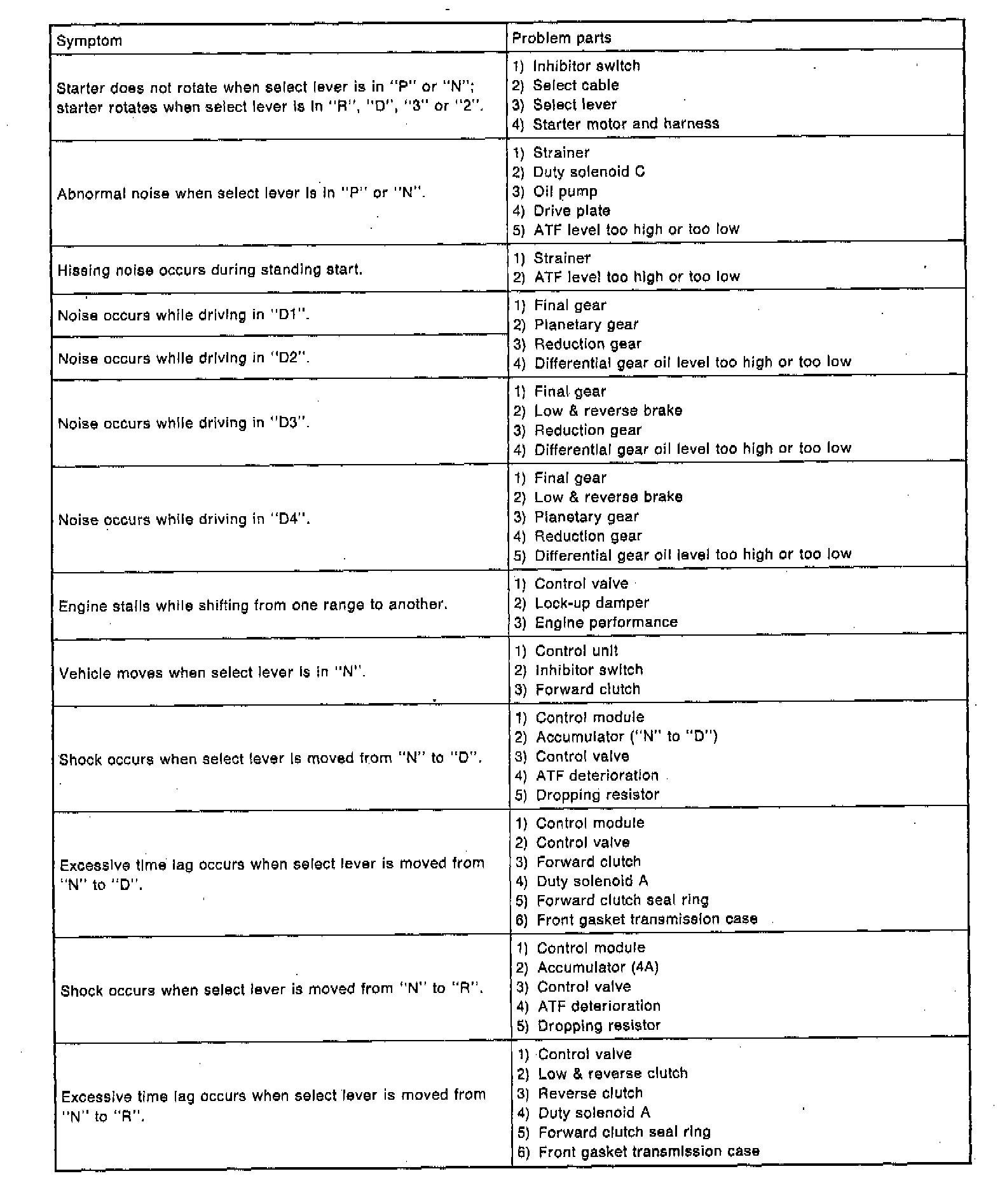 GENERAL DIAGNOSTIC TABLE