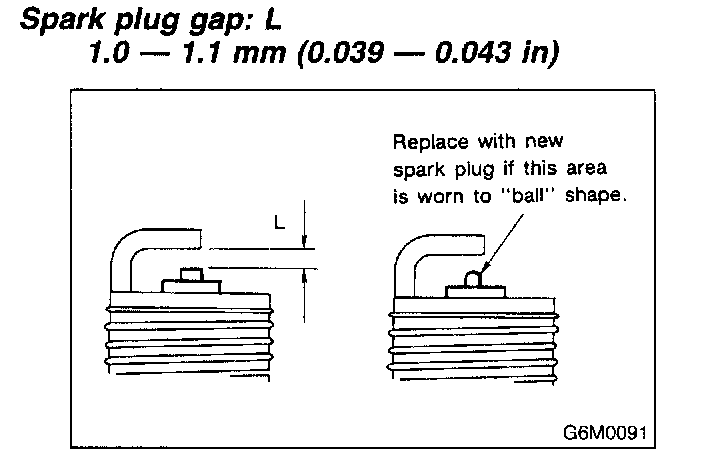 After cleaning spark plugs, recondition firing surface of electrodes with file. Then correct the spark plug gap using a gap gauge.