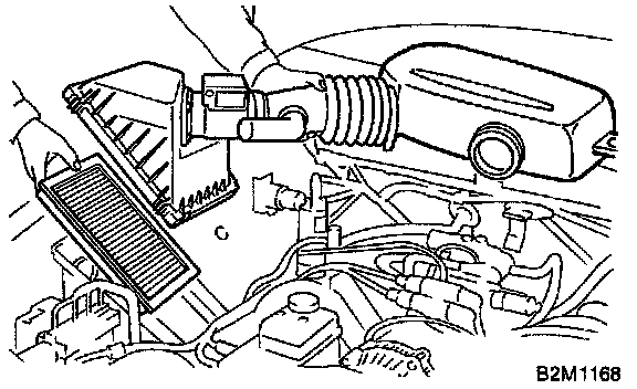 2) Remove air intake duct with air cleaner upper cover, and remove air cleaner element.