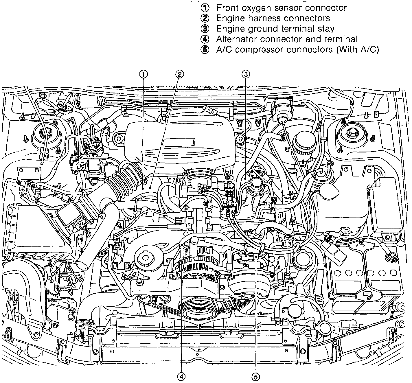 (5)A/C compressor connectors (With A/C)