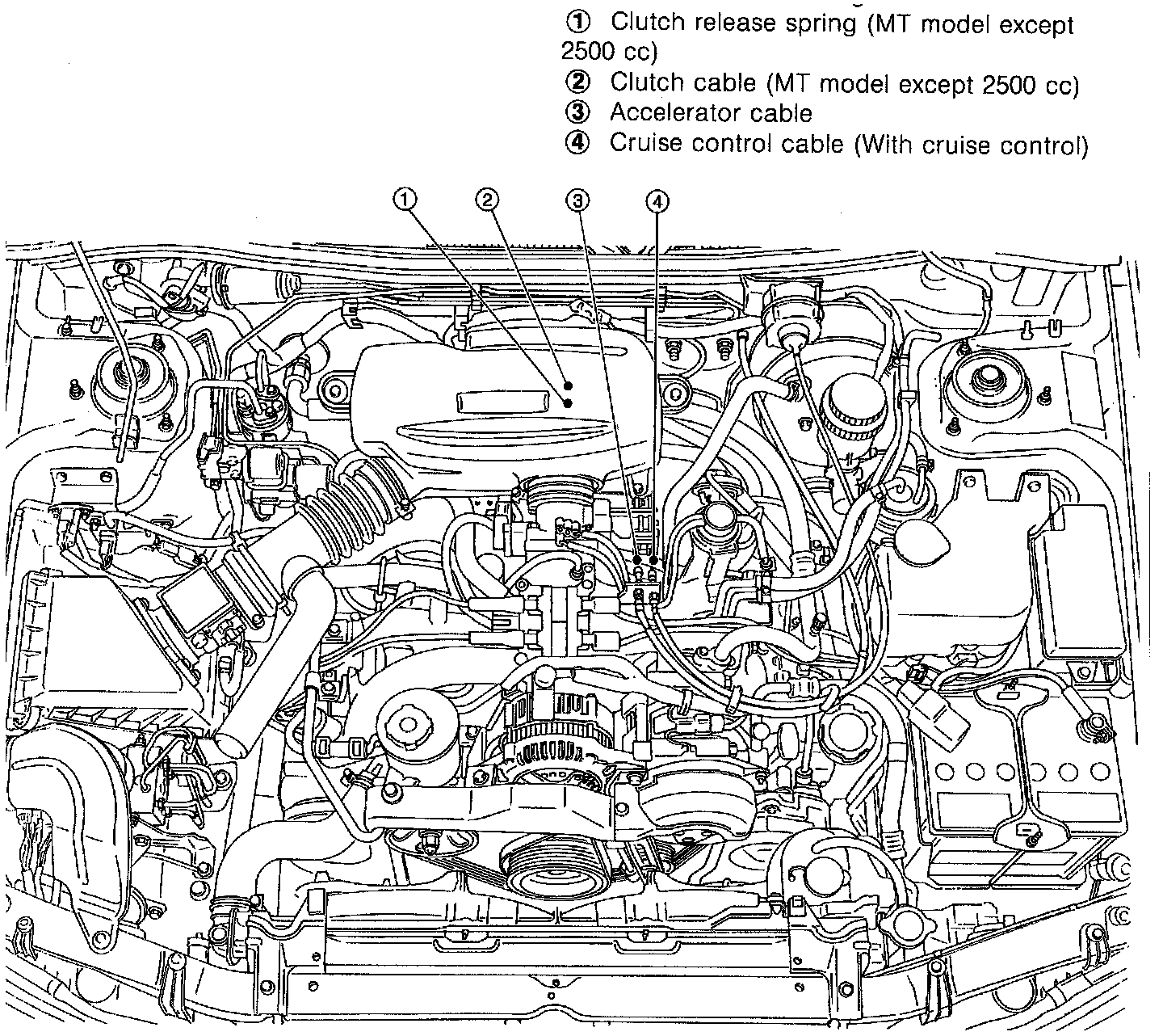(2) Clutch cable (MT model except 2500 cc)