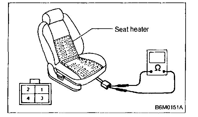 Check continuity between terminals of seat heater connector.