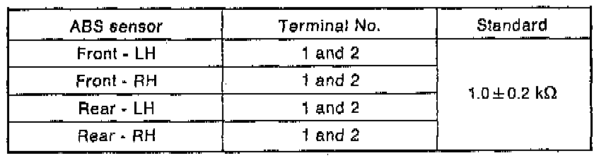 CAUTION: If resistance is outside the standard value, replace ABS sensor with new one.