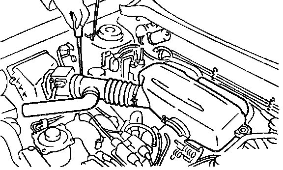 2) Loosen clamp which connects air intake duct to mass air flow sensor.