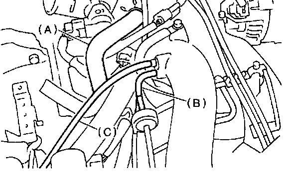 7) Disconnect vacuum hose (C) from cruise control diaphragm. (With cruise control models)