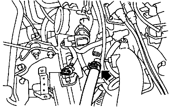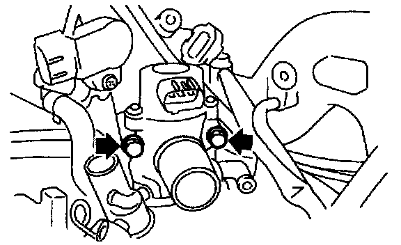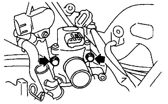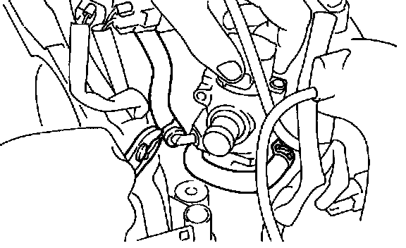 10) Disconnect engine coolant hoses from idle air control solenoid valve, and take them off.