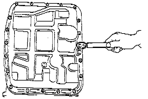 3. Install the oil pan to the transmission case assembly, and secure with 20 bolts.