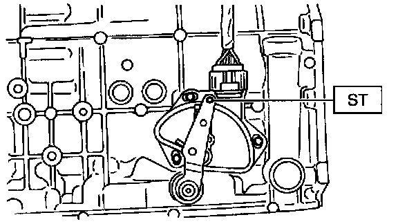 1. With the selector lever set to "N" adjust the inhibitor switch so that the hole of range select lever is aligned with the inhibitor switch hole with SST.