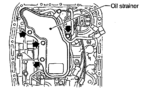4. Install the oil strainer to the control valve. Be careful not to cut or break the 0-ring. Then tighten four bolts.