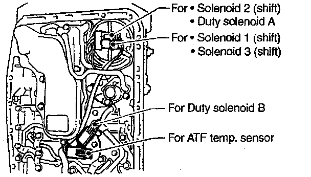 - After inserting the extension case halfway, connect the connector for duty solenoid C. Be careful not to jam the cord in the case.