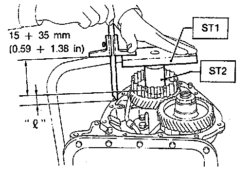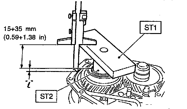 2. Measure the distance "l" from the transmission case mating surface to the reduction drive gear end surface with SST1 and SST2.