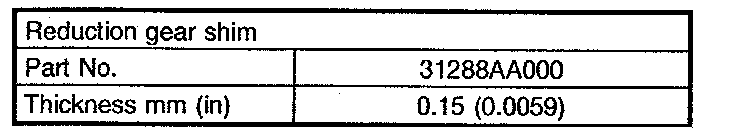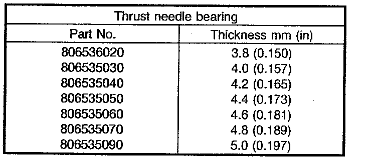 Select suitable thrust needle bearing from among those listed in the following table to adjust clearance in the 0.05 - 0.20 mm (0.0020 - 0.0079 inch) range.