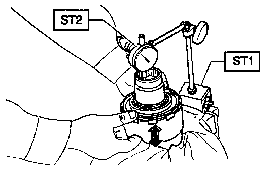 1. After assembling, set up a SST1 and SST2 to end of viscous coupling shaft. Move viscous coupling up and down, and measure backlash in the axial direction.