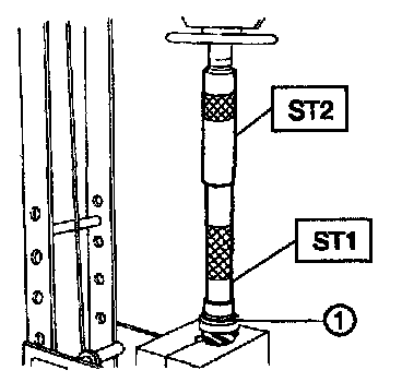 2. Using ST1, ST2 and ST3, tighten lock nut to the specified torque.