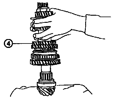 3. Install 2nd driven gear, 1st-2nd baulk ring and insert onto driven shaft. After installing key on driven shaft, install 3rd-4th driven gear using SST and press.