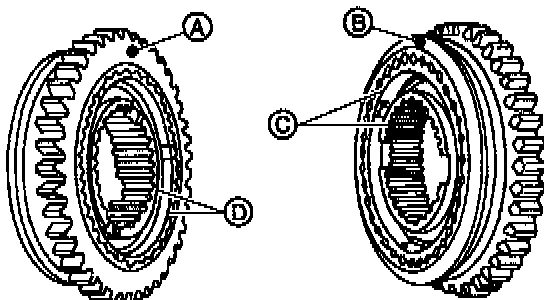 1. Install 1st driven gear, 1st-2nd baulk ring and gear and hub assembly onto driven shaft.