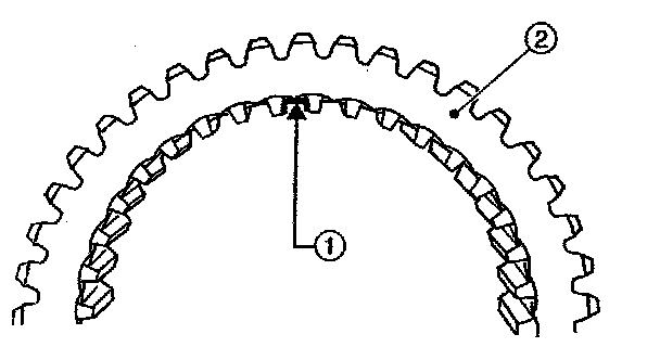 - Be sure the insert keys are correctly located in the insert key grooves (1) inside the reverse driven gear (2).