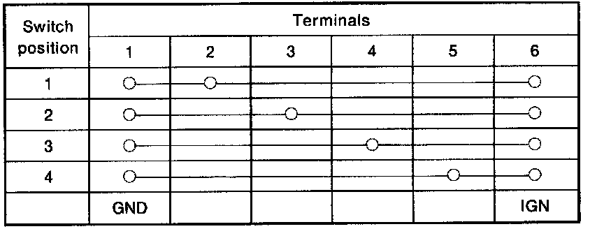 Check continuity between terminals at each switch position.