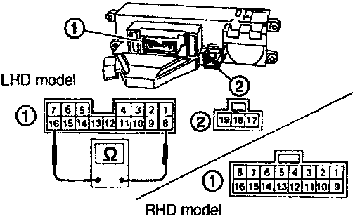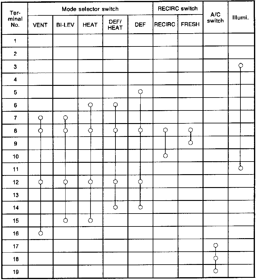Check circuit continuity between each terminal, when push control switch is turned ON.