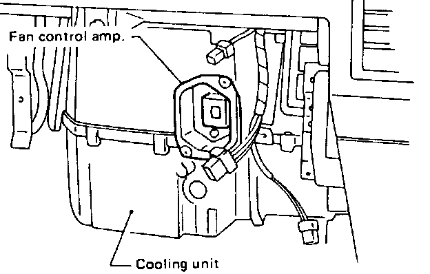 The fan control amplifier is located on the cooling unit. It amplifies a 12-step base current flowing from the auto amplifier to change blower speed.