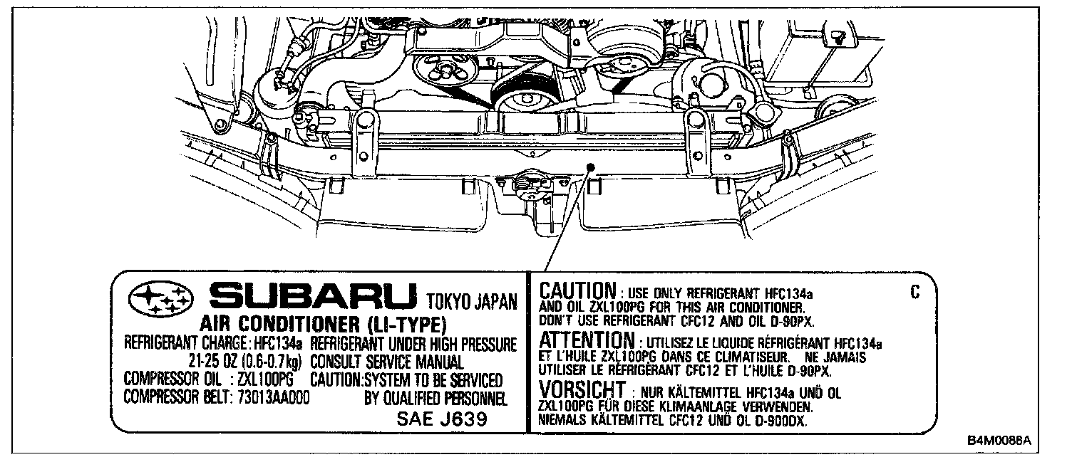 Vehicles with HFC-134a air conditioning systems, use only HFC-134a parts that are indicated on a label attached to the vehicle. Before performing any maintenance, verify the type of air conditioning system installed in the vehicle.