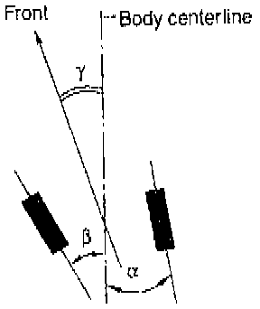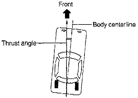 NOTE: Thrust angle refers to a mean value of left and right rear wheel toe angles in relation to vehicle body center line. Vehicle is driven straight in the thrust angle direction while swinging in the oblique direction depending on the degree of the mean thrust angle.