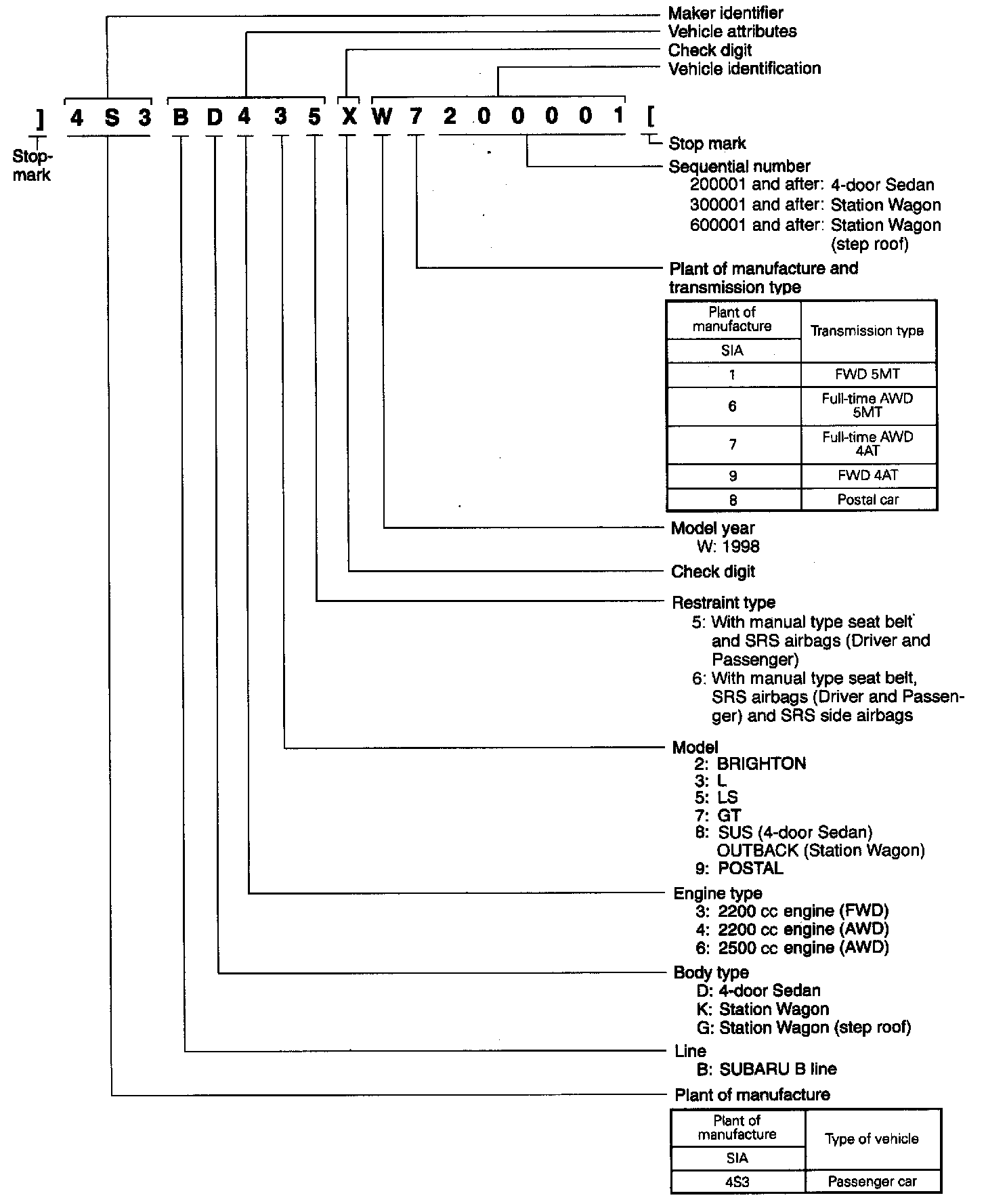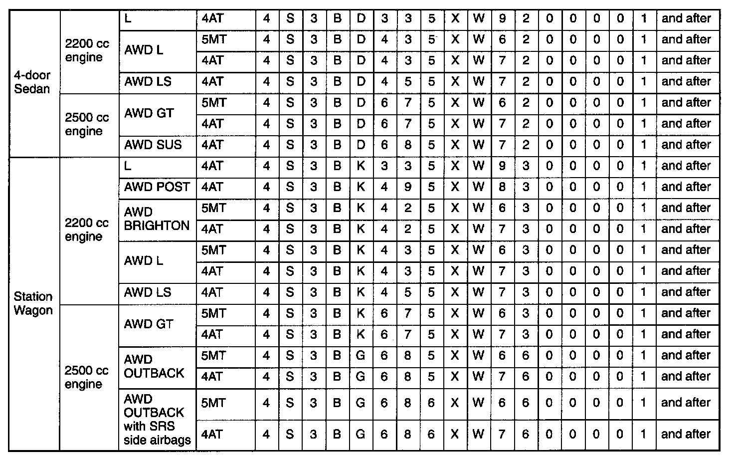 Legacy Outback AWD F4-2.5L DOHC
