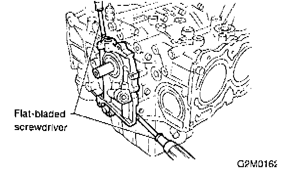 15. Remove oil pump by using flat bladed screwdriver.
