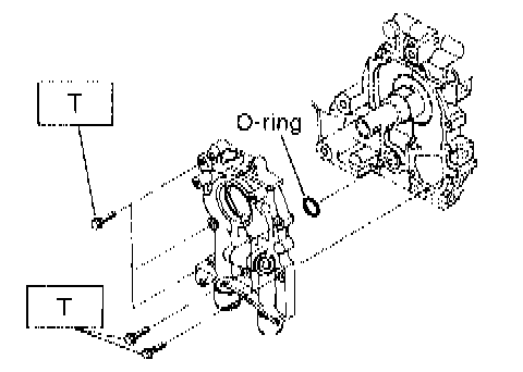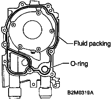 1. Apply fluid packing to matching surfaces of oil pump.