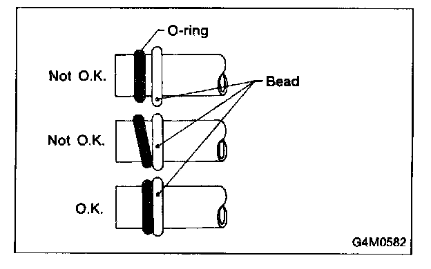 2. Do not handle O-rings with gloves, shop towels, etc., since lint particles may cling to the O-ring, possibly causing a leak upon assembly.