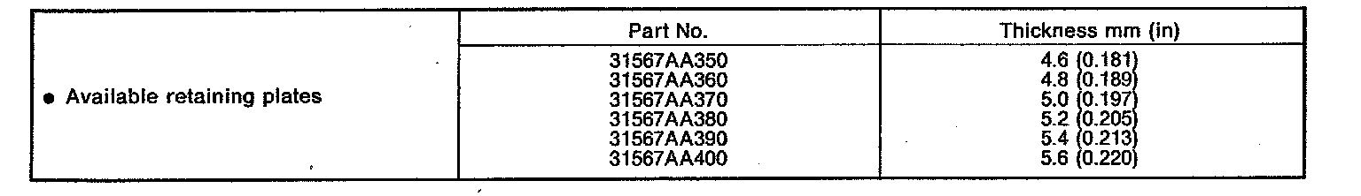 NOTE: Before measuring clearance, place the same thickness of shim on both sides to prevent retaining plate from tilting.