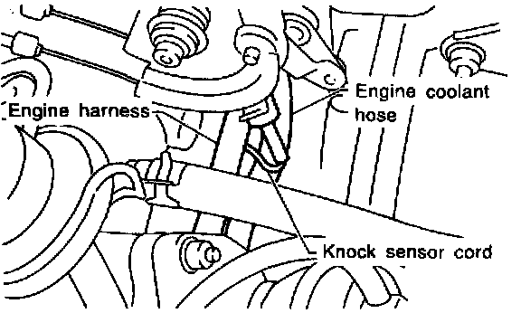 NOTE: The knock sensor cord must pass between the engine harness and engine coolant hose.