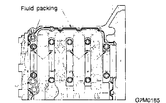 Caution: Do not allow fluid packing to jut into O-ring grooves, oil passages, bearing grooves, etc.