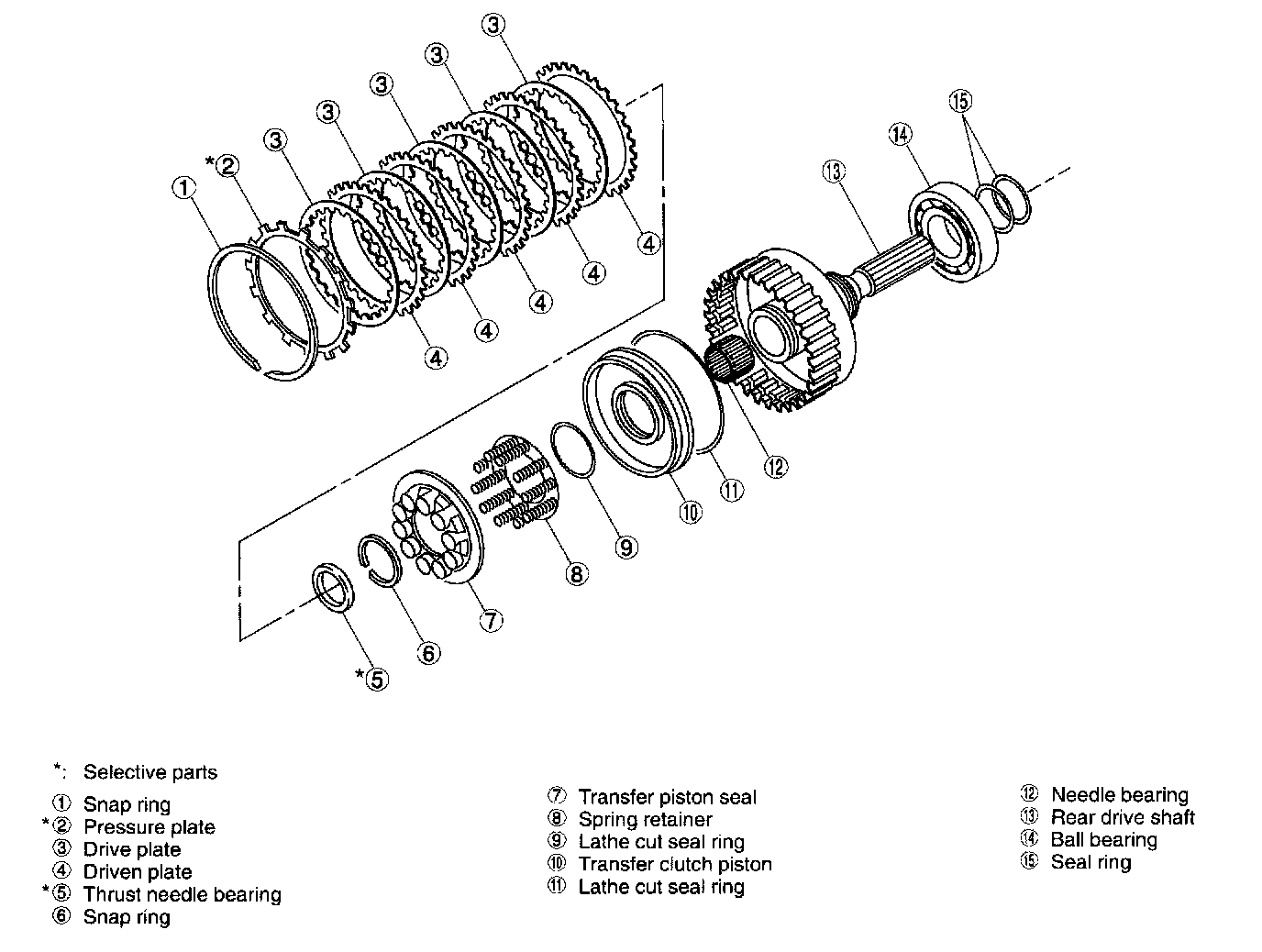 Also, the transfer clutch drum and rear drive shaft are joined to each other by welding. The rear drive shaft has drilled oil passages for transfer clutch control and also for lubrication of extension bushing and ball bearing in it.