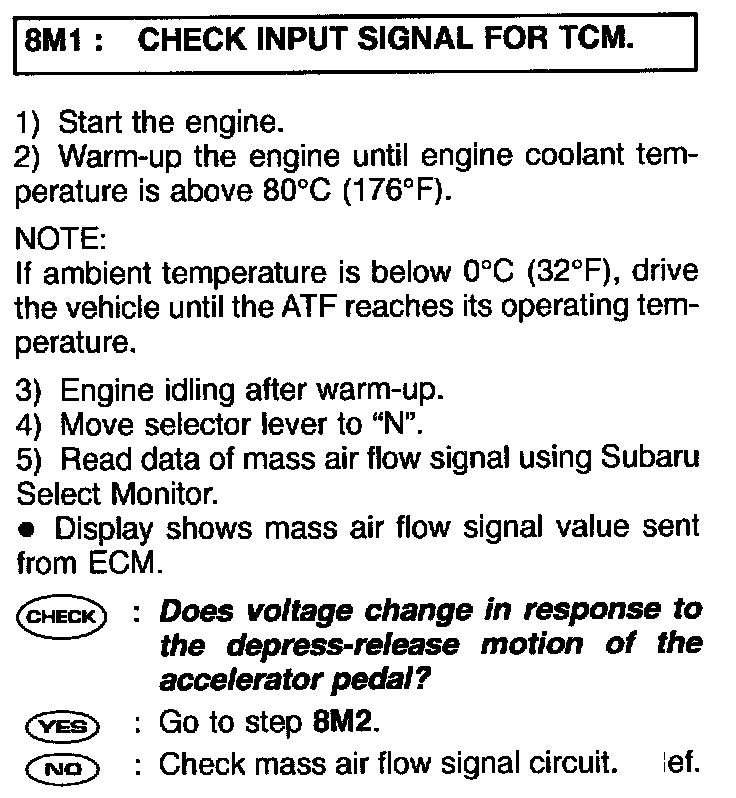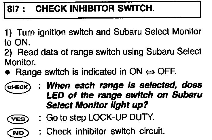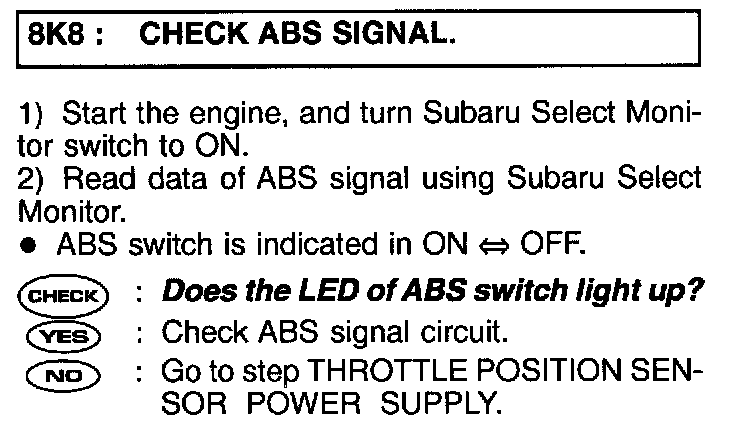 BASIC DIAGNOSTIC CHARTIf no trouble codes appear in the on-board diagnostics operation (although problems have occurred or are occurring), measure performance characteristics of sensors, actuators, etc., in the Subaru Select Monitor and compare with the "basic data" to determine the cause of problems.