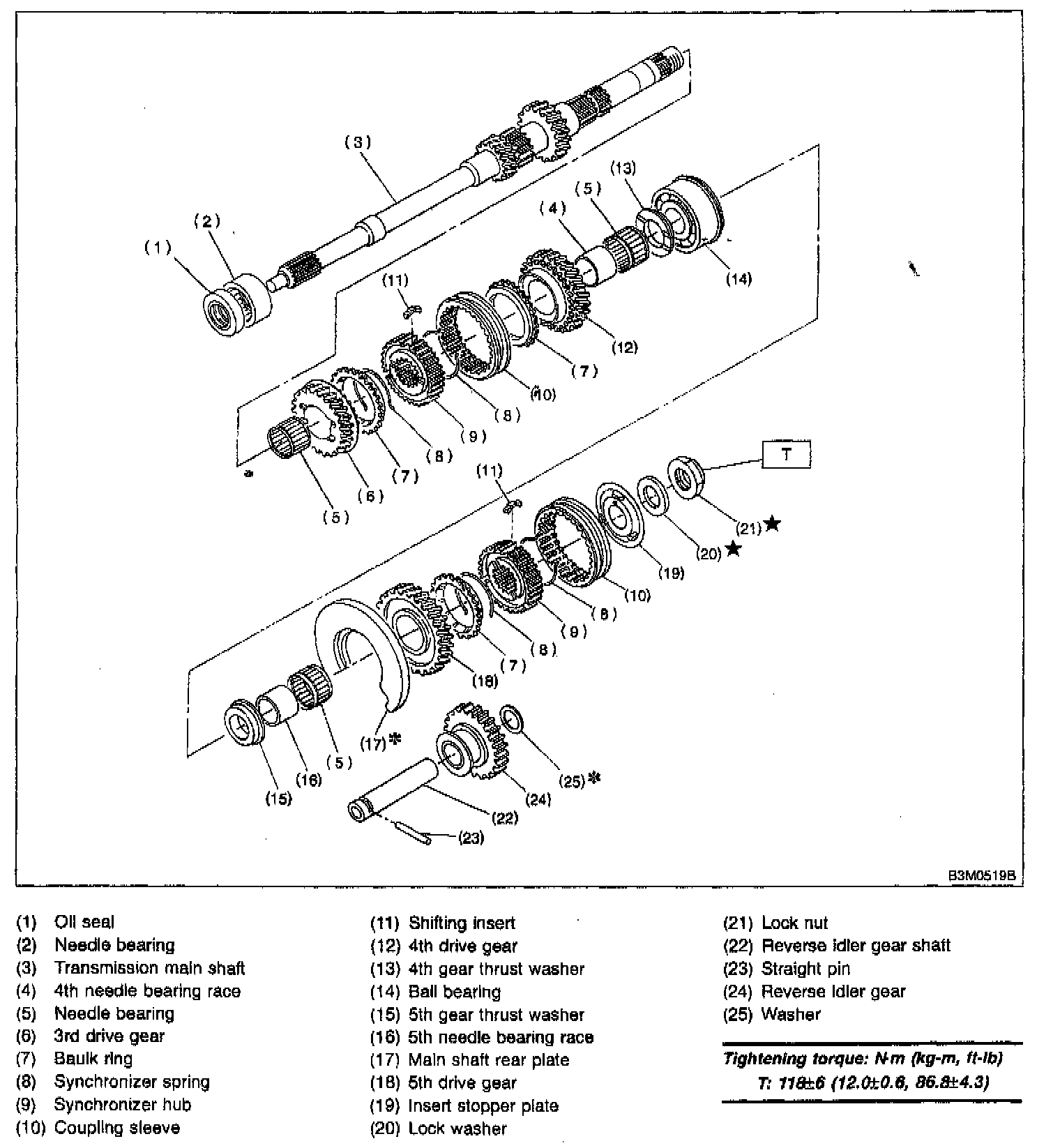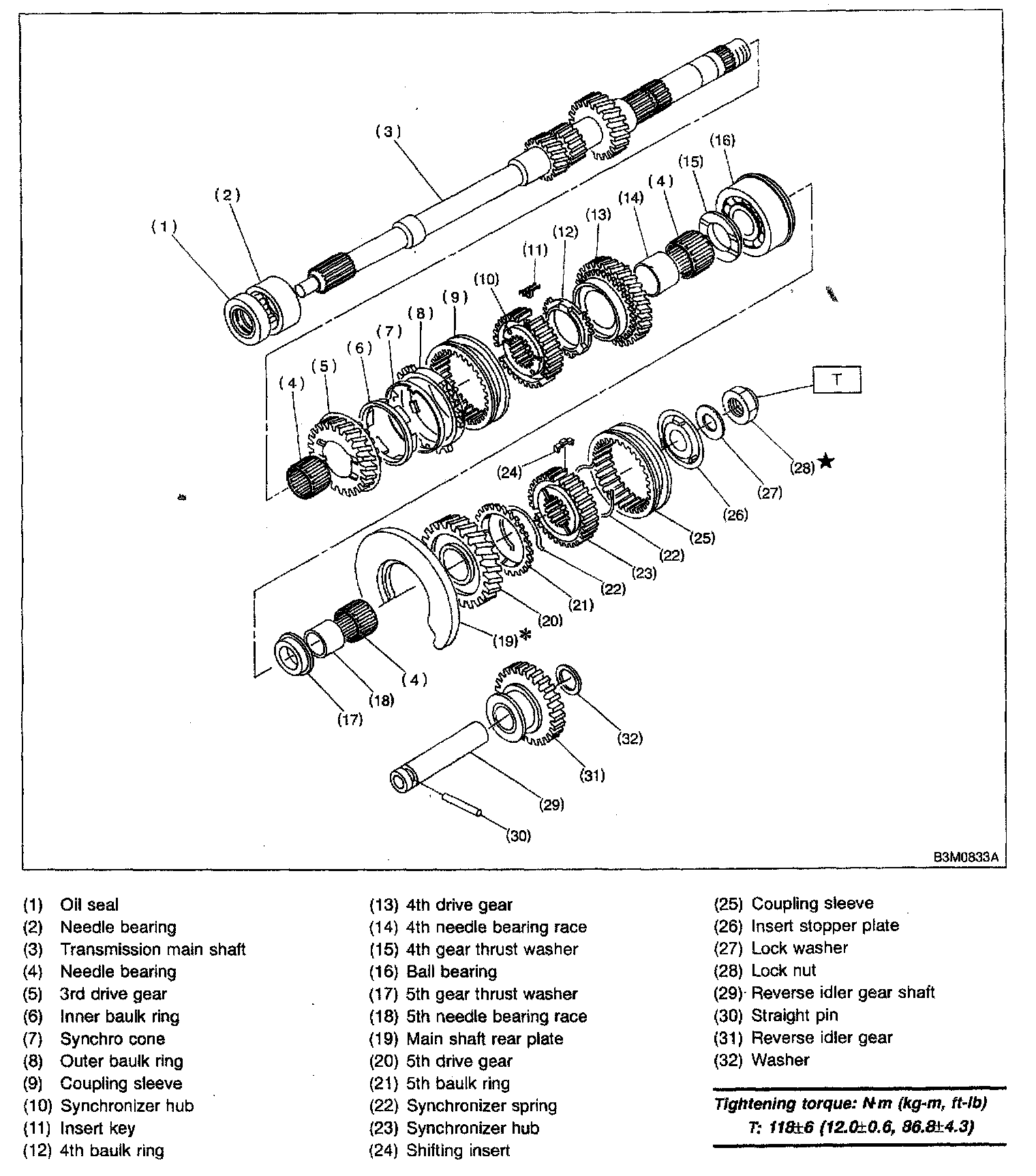 5-spd M/T, Transmission Main Shaft Assembly (2500 CC):