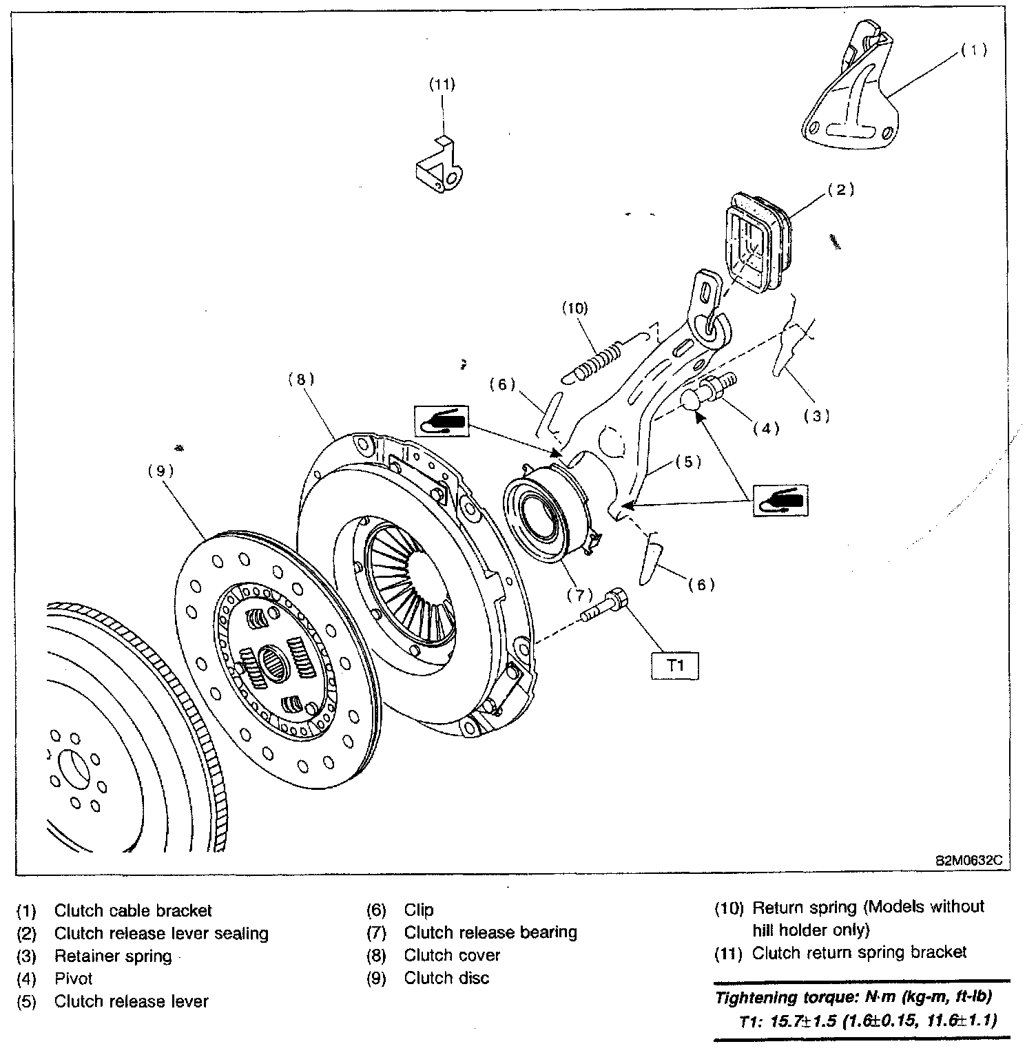 5-spd M/T, Transmission Clutch System (Mechanical Application Type):