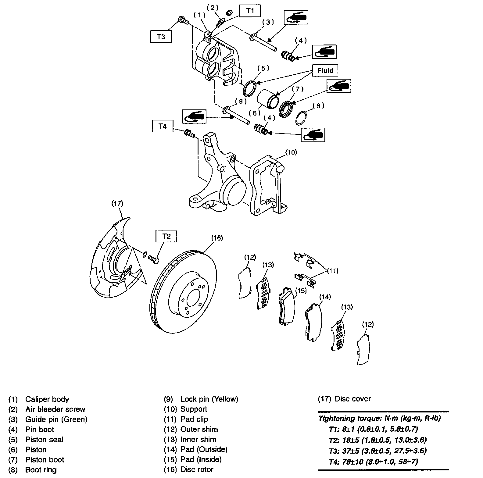 1. Clean mud and foreign particles from caliper body assembly and support.