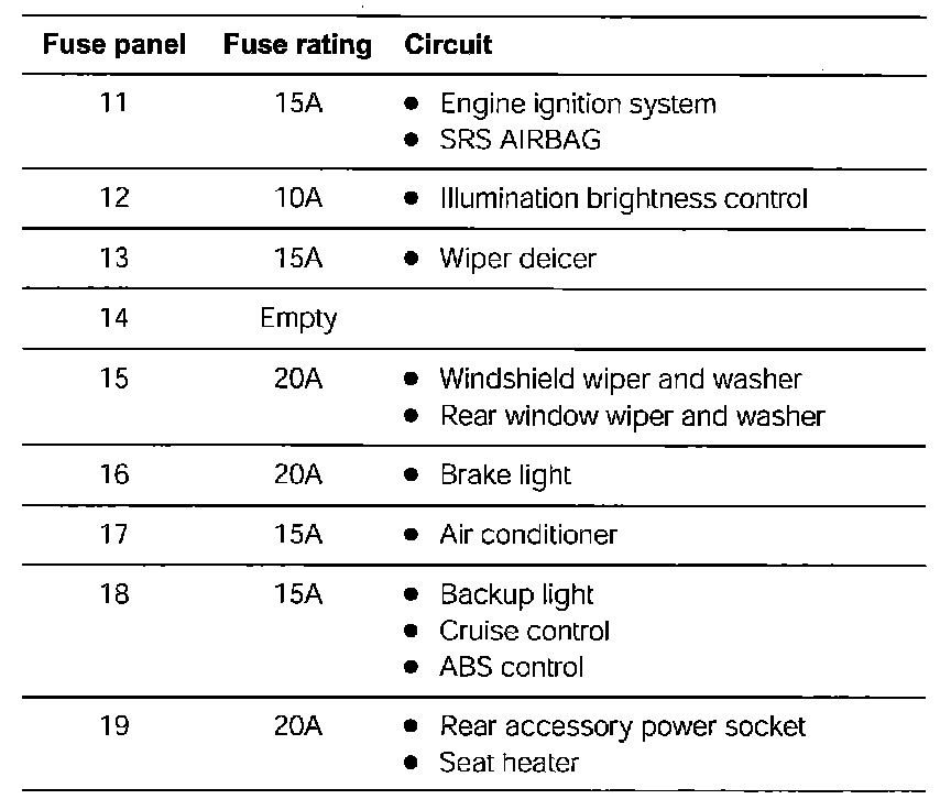 Fuse Panel Details