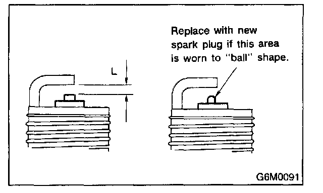 After cleaning spark plugs, recondition firing surface of electrodes with file. Then correct the spark plug gap using a gap gauge.