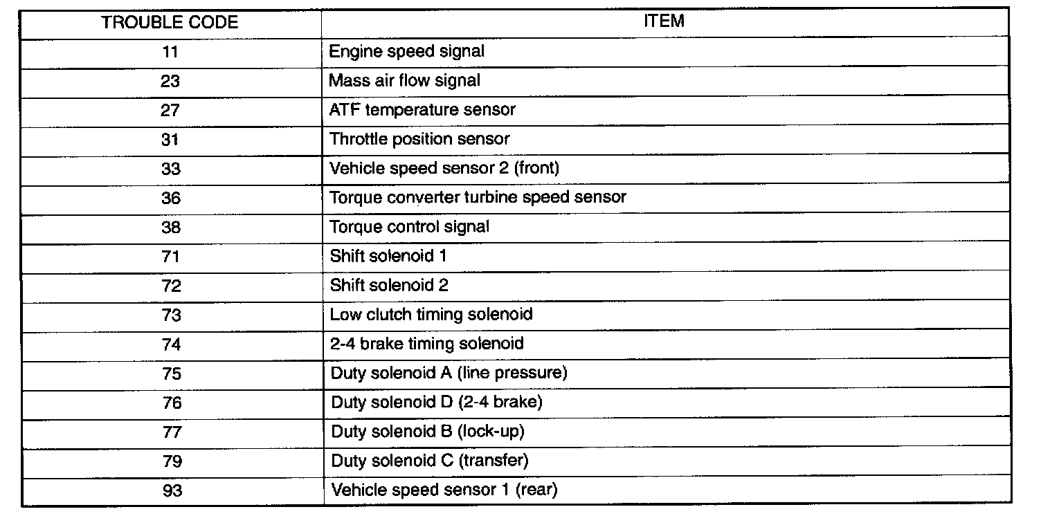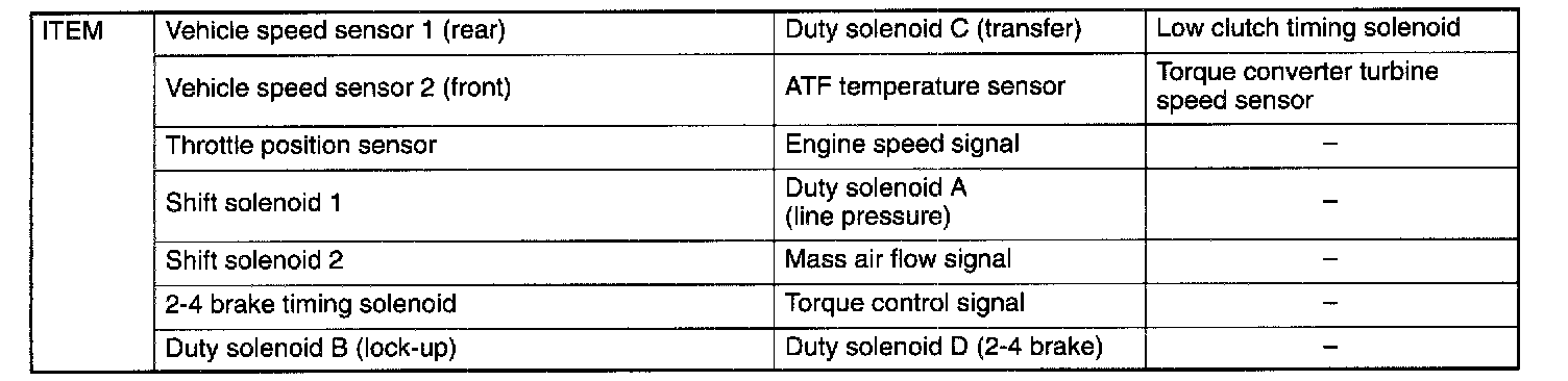 The on-board diagnostics system is capable of detecting any trouble which has occurred in any of the input and output signal systems shown in the table.