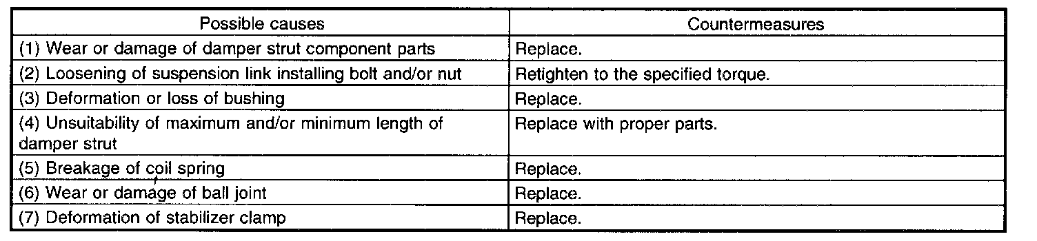 IMPROPER VEHICLE POSTURE OR IMPROPER WHEEL ARCH HEIGHT