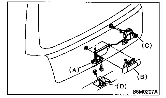 3. Remove retaining spring from key cylinder (C), and detach key cylinder from outside.