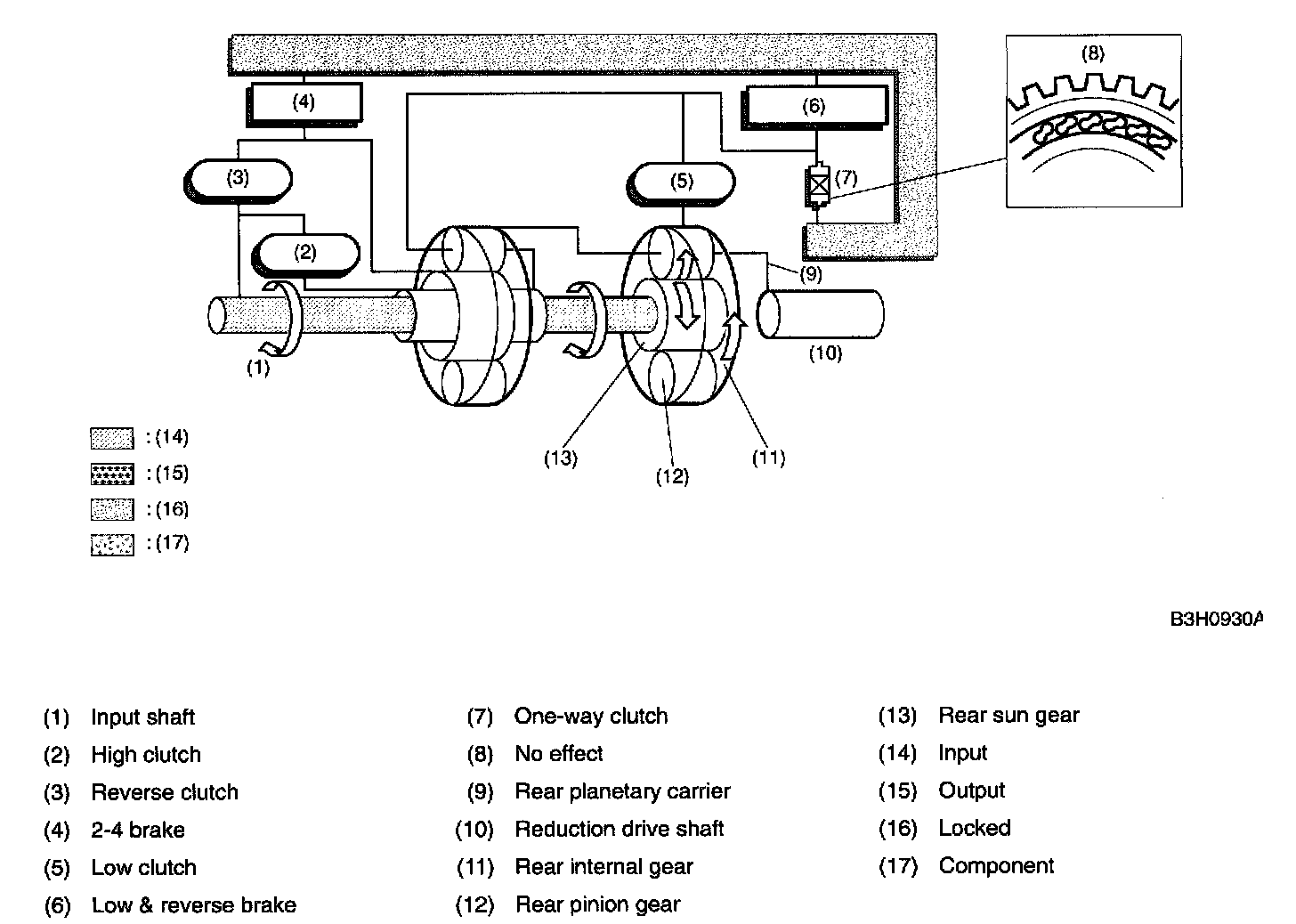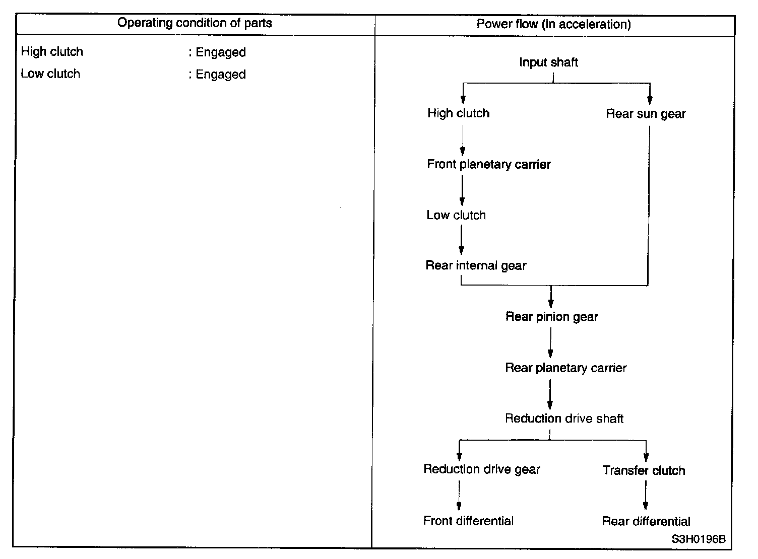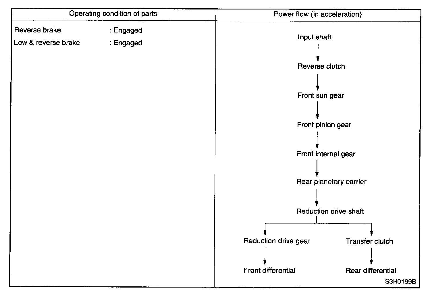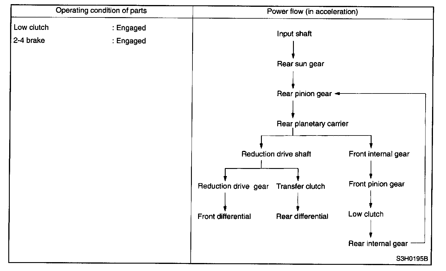 During coasting , therefore, the back driving force from the reduction drive gear is transmitted to the input shaft. This means, unlike the 1st speed in D or 3 range, that the engine braking effect is available in this range.